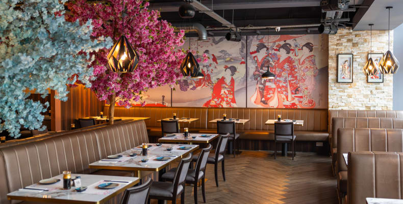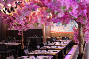 Get acquainted with hundreds of delicious cold and hot traditional Japanese & Chinese dishes all ordered via touch screen technology at tables set beneath stunning oriental blossom trees.